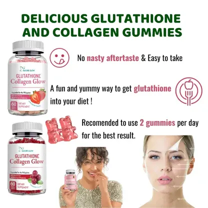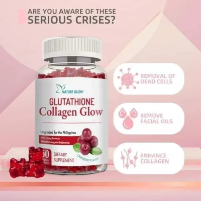 Nature’s Glow Glutathione Collagen Glow is a dietary supplement available in delicious cranberry-flavored gummies. Designed for whitening and anti-aging, this product contains a powerful blend of ingredients including glutathione and collagen that promotes beauty from within. With a formulation made in the Philippines, this supplement utilizes an advanced delivery system for maximum absorption, helping to stimulate collagen production and improve skin luminosity. Enjoy a radiant, youthful appearance with this organic supplement.