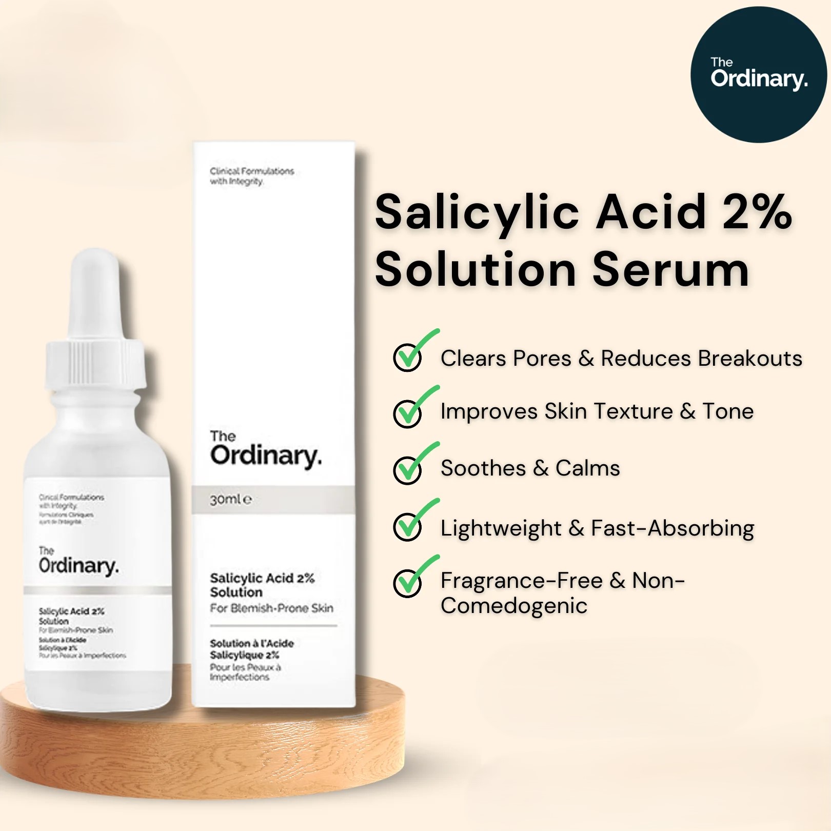 The Ordinary Salicylic Acid 2% Solution (30 ml) is a targeted skincare treatment specially formulated for oily, acne-prone, and congested skin. Enriched with 2% salicylic acid (BHA), it works deep within the pores to exfoliate from the inside out, helping to clear impurities, reduce breakouts, and refine skin texture. Unlike harsh scrubs, this lightweight serum provides a gentle chemical exfoliation that improves clarity while maintaining skin balance.