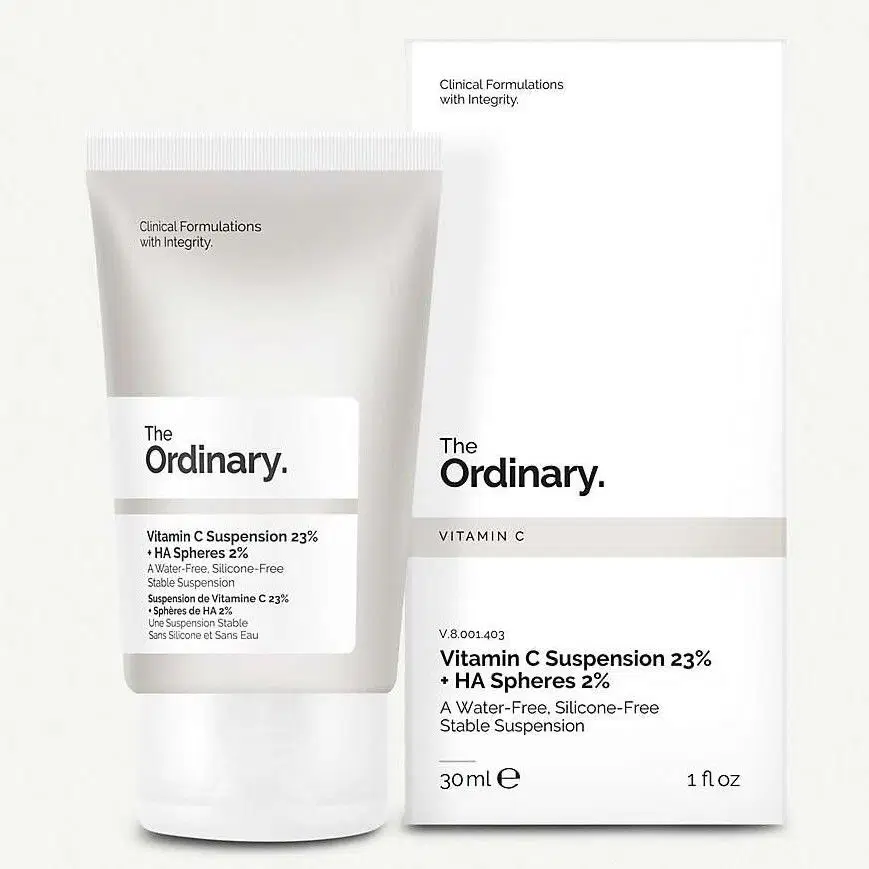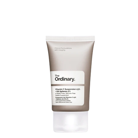 The Ordinary Vitamin C Suspension 23% is a high-strength, water-free treatment that delivers pure L-Ascorbic Acid directly to the skin for maximum effectiveness. Enriched with hyaluronic acid spheres, it helps improve hydration while working to brighten dull skin, reduce visible signs of aging, and even out skin tone. This lightweight yet powerful formula promotes healthier, radiant-looking skin and provides strong antioxidant protection against environmental stressors.